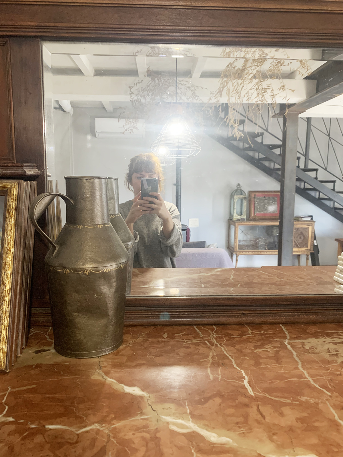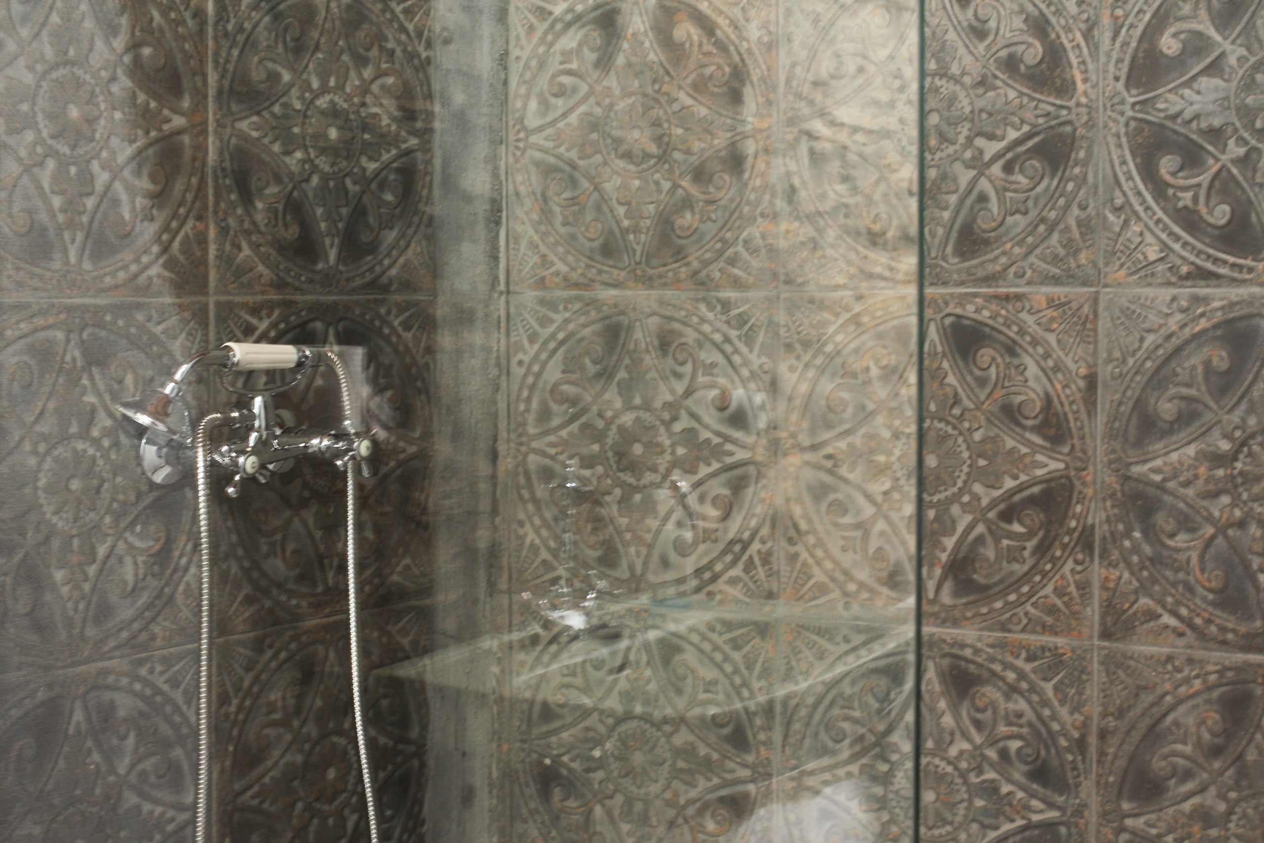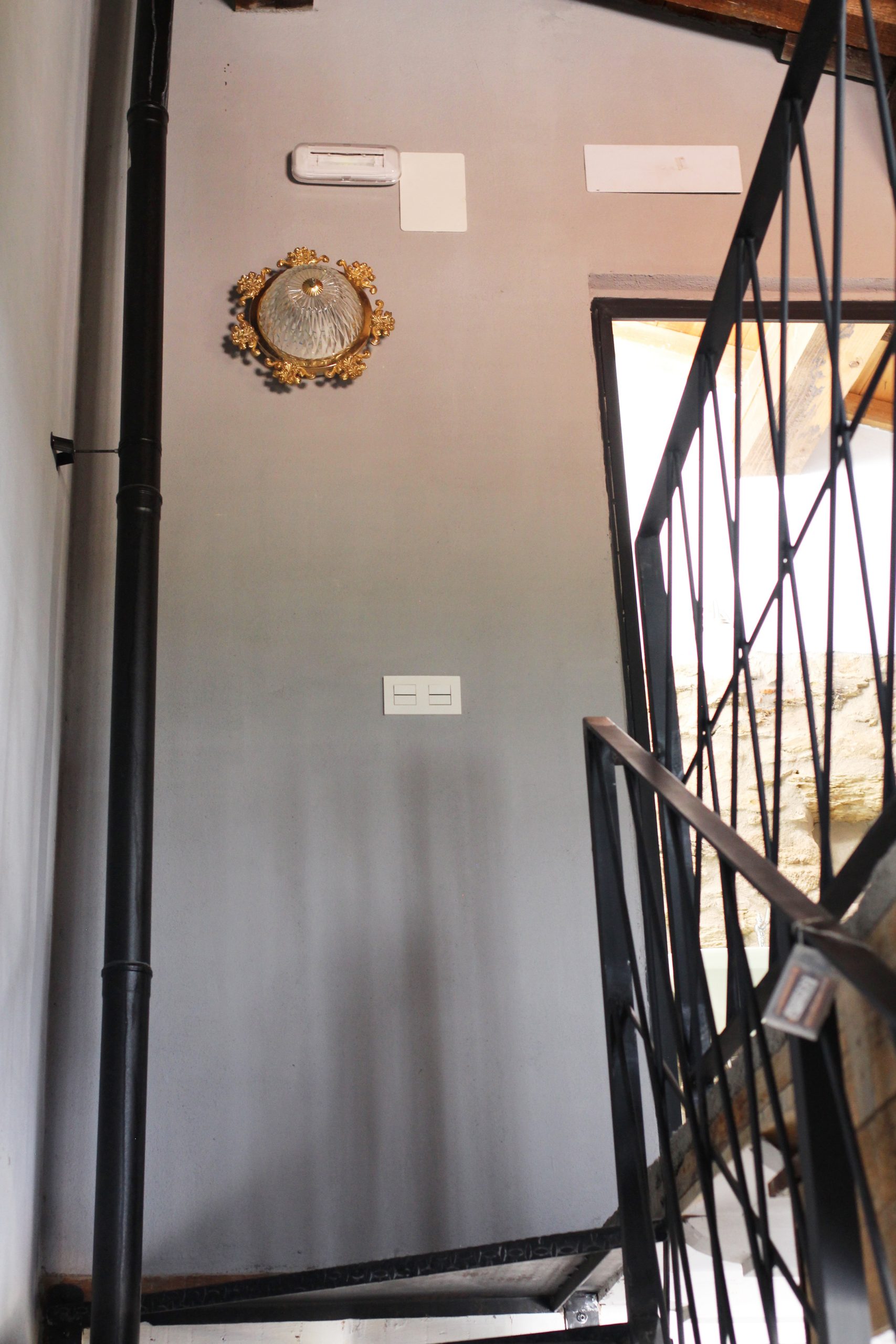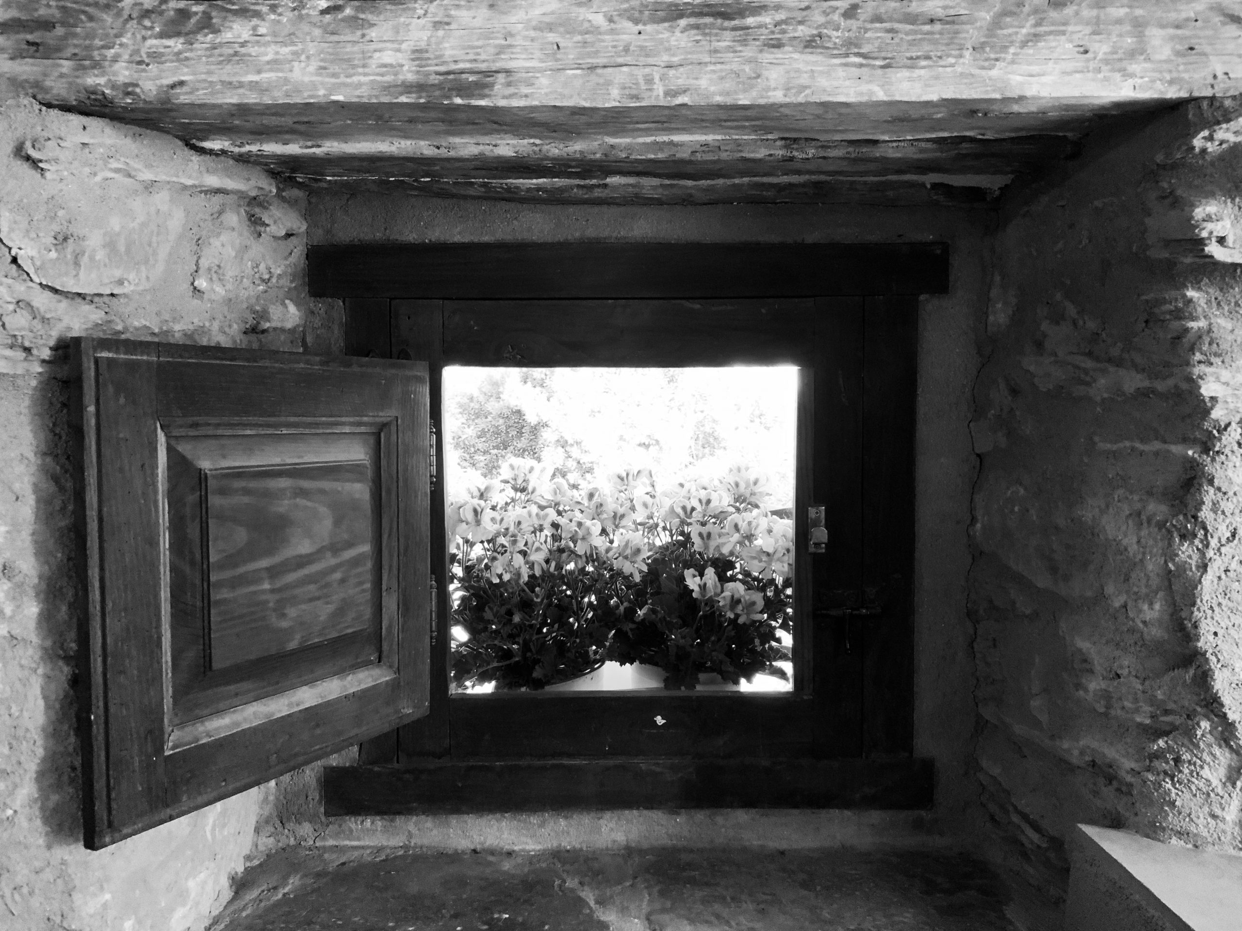 En la planta de arriba una habitación con techo abuhardillado y ventanas de madera. La cama de hierro es una herencia de mi abuela, cálida y mullida, con mesillas de madera y un escritorio maravillo. El cuarto de ducha es espacioso y tiene una claraboya que le permite tener luz natural durante todo el día. El lavabo verde es de un anticuario y los azulejos de la ducha salen en la película “El cuento de la criada”, son preciosos. Pintada en colores grises, blancos, madera teñidas de blanco y nogal y paredes en piedra. Con acceso directo por el patio, el cual es compartido, donde hay unas tumbonas para tomar el sol y poder leer un buen libro, una mesa con sillas para disfrutar de la comida o desayuno. La mitad está tapado con un porche en el cual te puedes proteger mientras llueve o calienta el sol.