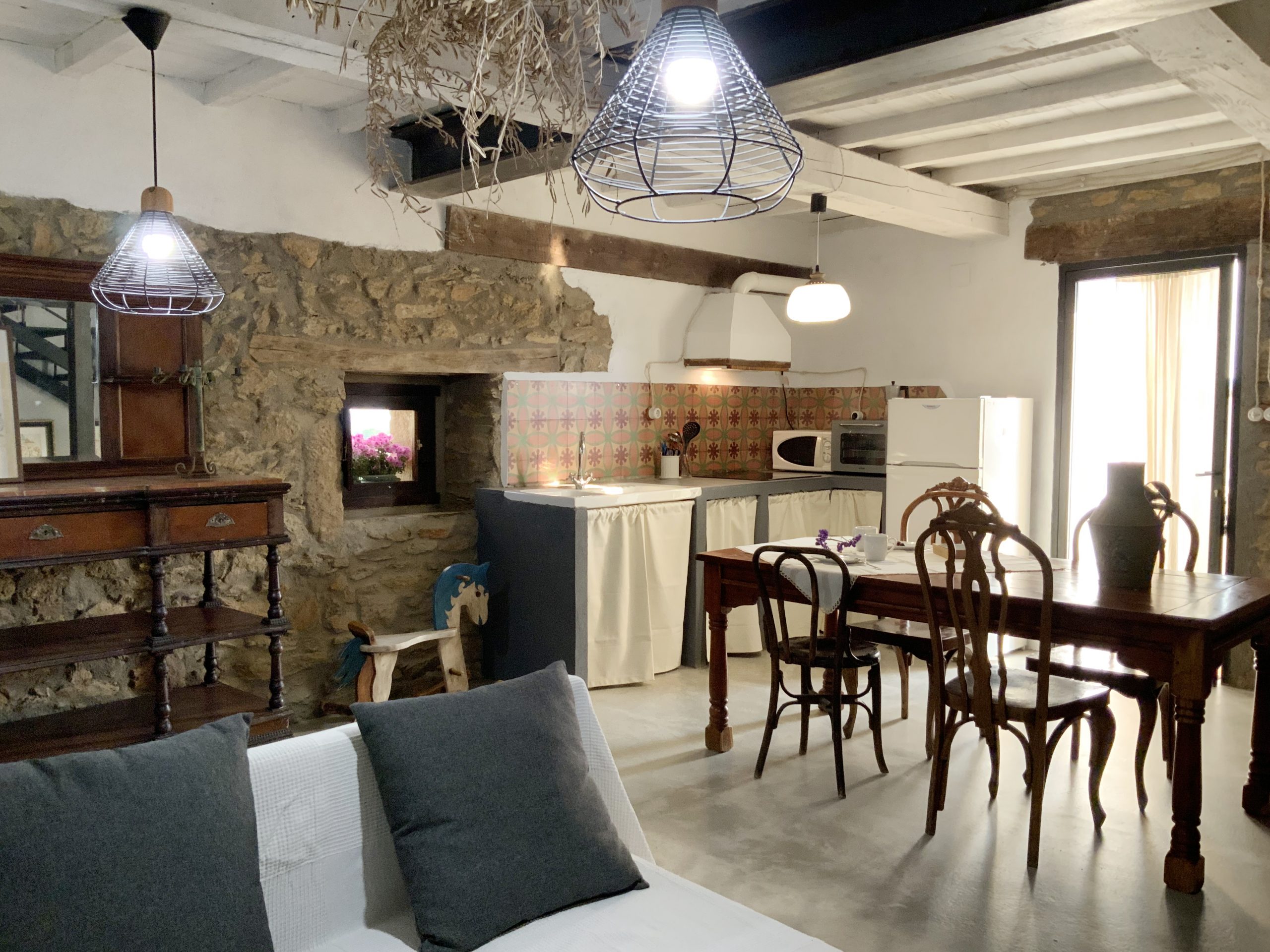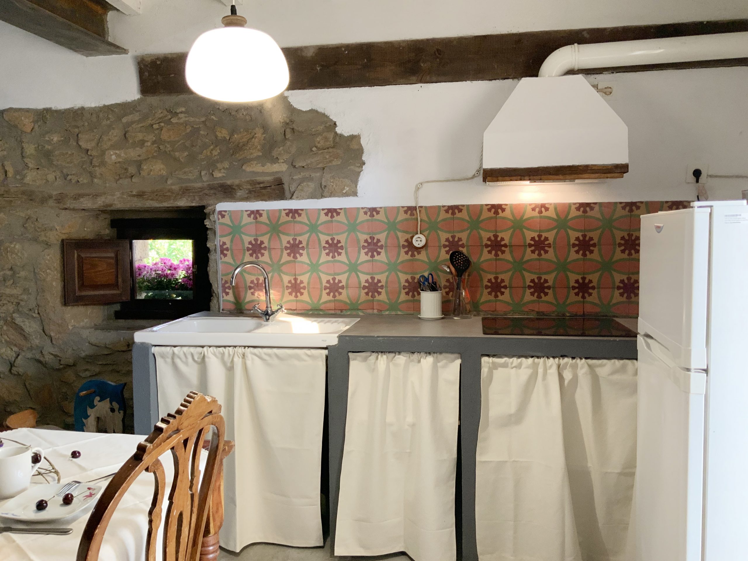 La Grulla Gris, una casa muy especial de paredes de piedra que conserva su espíritu, humilde y sencillo. Dividida en dos plantas, cada una de más de veinte metros, cocina comedor en la primera, con una mesa de madera muy amplia, la cocina equipada con todo lo necesario para cocinar tus delicias, el fregadero de porcelana de dos senos, techos pintados en blanco, una deliciosa estufa de pellet para convertirla en tu hogar en invierno y aire acondicionada para soportar los calores del verano.